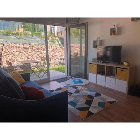 Apartmán má terasu, výhľad do záhrady, 1 spálňu, obývaciu izbu, TV s plochou obrazovkou, vybavenú kuchyňu s chladničkou a sporákom a 1 kúpeľňu s vaňou.